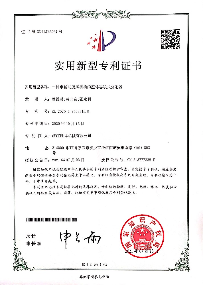 一種帶輔助脫壓機構(gòu)的整體容積式分配器