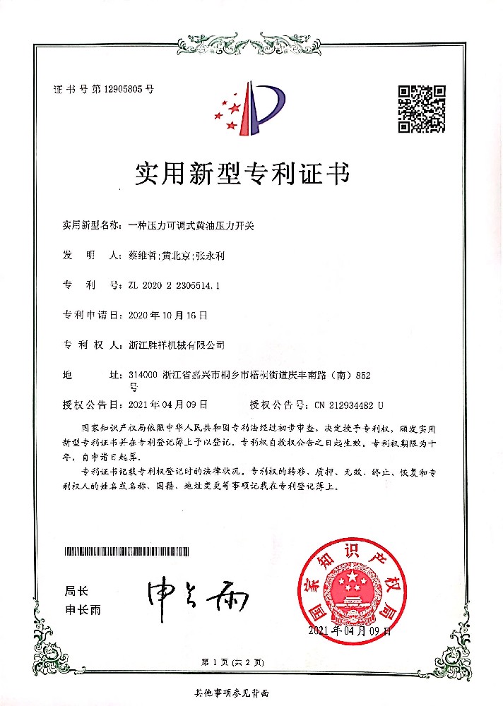 一種壓力可調(diào)式黃油壓力開關(guān)